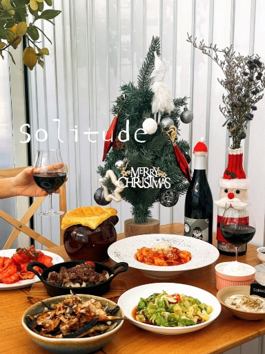 奶油芝士宽面,自然酒,招待所石榴虾,地中海火焰饼,三文鱼鳄梨塔塔,油淋抱子小甘蓝,招待所茄子,油封鸭腿芝士饼,煎蘑菇,松香罗勒小米饭