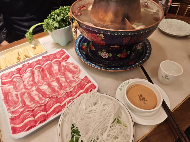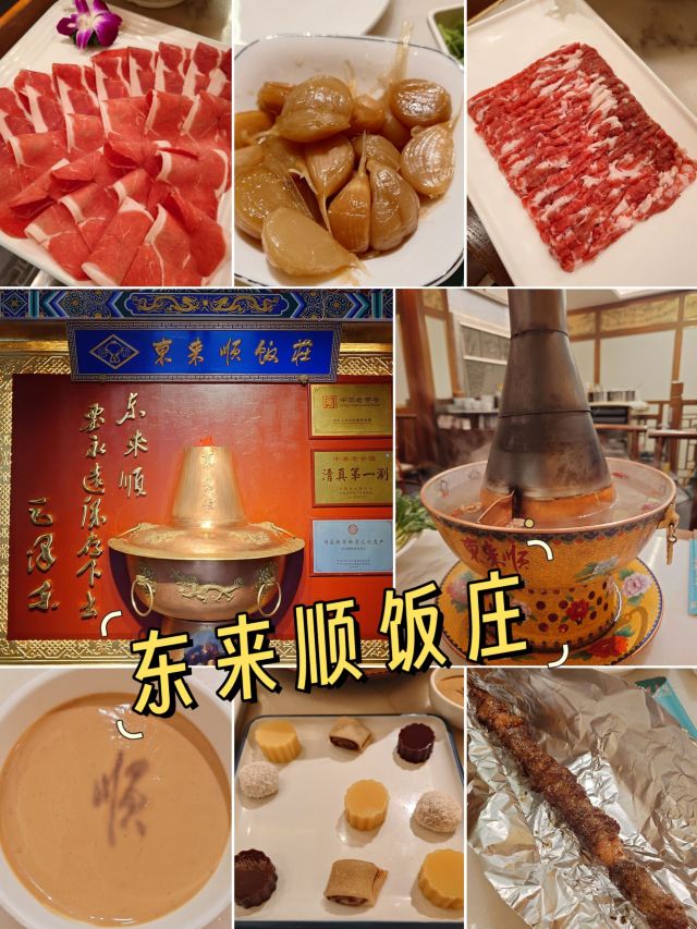 露晚湄🕰️始于1903年,妥妥的百年老字号 . 【套餐】 💰单人餐——158元 🥘分量很足,完全可以吃饱 🐑东来顺的涮肉从器皿、蘸料,到用肉都很有说道,选用的内蒙古锡林郭勒盟阉割后的小尾绵阳,不膻不腻,刀功摆盘讲究的就是“薄、匀、齐、美” . 【环境】 🏠一座二层小楼,屋内一二层中间做了镂空设立,一盏中式灯笼造型的水晶吊灯下方是老北京火锅专用器皿,护栏周围则是画作和匾额,二楼有包间。 🎶背景音乐很有历史感 . 【服务】 👫周末的饭点排队是难免的 👩🏻工作人员大都是年轻人,挺客气,上菜速度也快,细节也能照顾到 . 【建议】 📱饭点去吃一定要提前去排号,如果前面太多号,可以在前门大街逛一逛,可以手机上查看进度,但不要走太远,因为过号很快