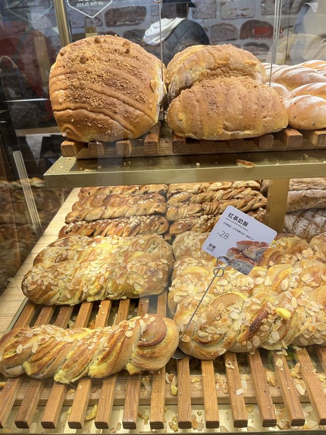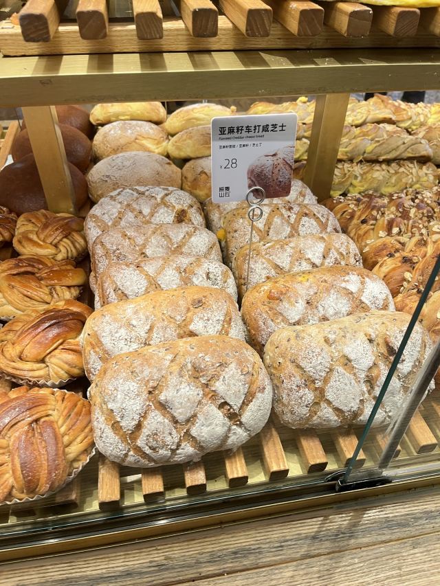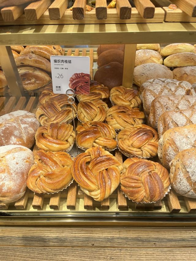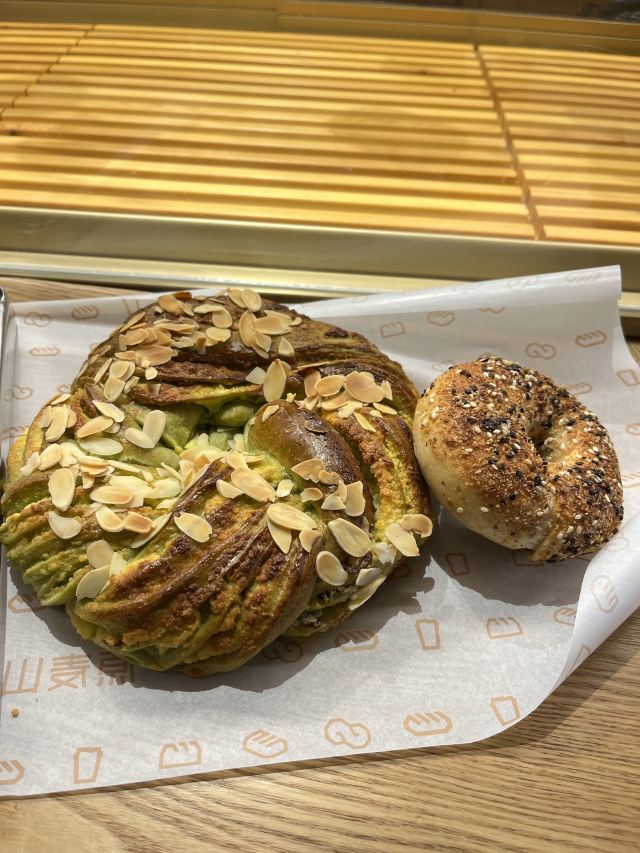 原麦山丘(西单君太店)在西单君太百货二楼沿的廊北侧,在楼下看不是太显眼。好久没来了感觉还是原来的样子。外面有一个大大的面包模型。 里面摆满了各种面包,时不时的有新做的面包推出来。有试吃的面包🥯,每次去好像都不一样。靠近门口有几个位置可以坐下来 面包总体感觉不错,这次买了一个抹茶口味的,第二天才吃感觉也不错。每次买面包都可以帮着切开