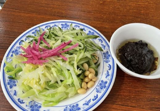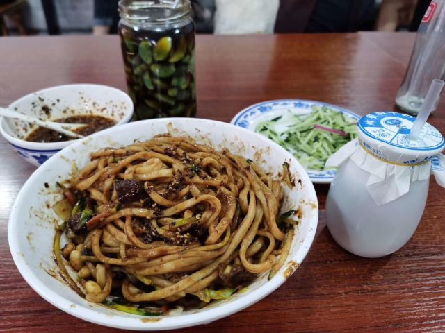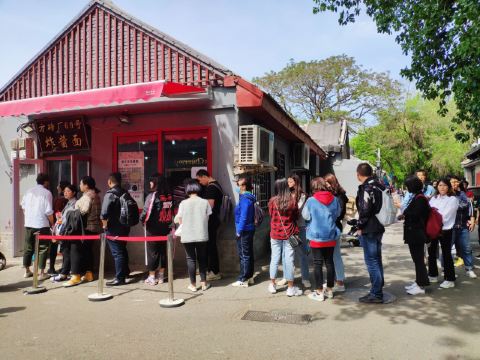 这是在北京当地很有名气的一家网红炸酱面馆,位于繁华的前门大街上,能屹立在这寸土寸金的地方说明这家面馆是非常受欢迎的,果然名不虚传,刚到这里坐下门口就有等位的了,看来我们来的还挺幸运。餐厅面积不大不小,但非常干净整洁,里面老北京装修风格,墙上大幅介绍了面馆的历史和影响,不少名人也来过这里吃面。他家的炸酱面很好吃,面条很筋斗,菜码齐全,炸酱咸淡正好,就是感觉肉丁有点硬,面汤随便自取,尤其说明的是这里的腊八蒜味道好极了,而且免费提供不限量,店家真是太实在了。服务没的说,方方面面都很到位,看来品牌面馆的服务人员就是训练有素。总之,来这里品尝炸酱面绝对是不虚此行啊。