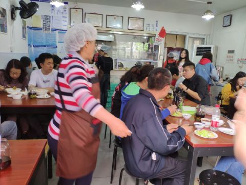 慕名而来,出了故宫坐了个电动摩的去的,20没商量。快六点的时候才走到胡同口,排队的人已经转弯,好在只有面,速度很快。面条很爽滑,主要炸酱很香,比海碗居的酱甜一些,很适合我们的口味,里面的腊八蒜绿绿的,看起来就很香,只是吃完有异味,自备口香糖哦!还有免费的面汤喝,原汤化原食嘛!吃着舒服。饭馆饭后结账,我已推荐给朋友们!