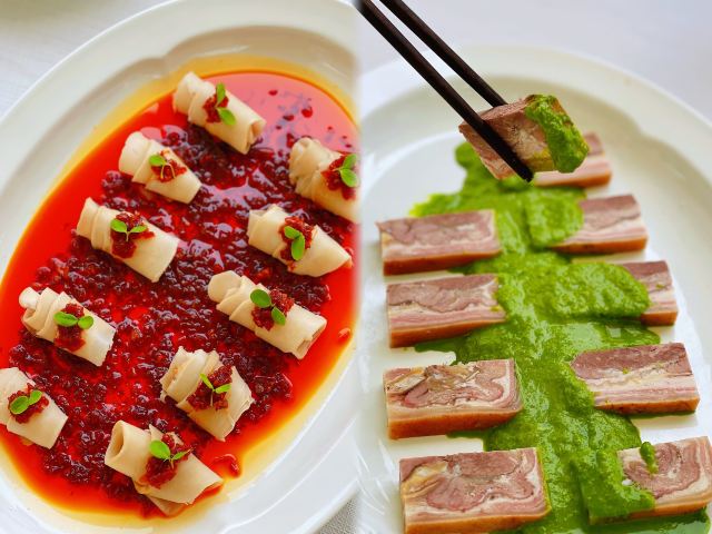 绿野仙踪olivia好久没去蓝港啦~这次直奔【沿途四季】,去吃云南菜,坐在湖边用餐,感受“不是洱海,胜似洱海”的惬意~沿途四季,这一刻留在秋天,在北京最美的落满金黄的季节里,美食美景交融,身心愉悦~ 【沿途四季】秋冬菜单上新,秋收冬藏,这一季是吃黑山羊、黄牛肉、咸鸡和九年百合的季节,沙葱会泽黑山羊、白切带皮会泽黑山羊、清炖会泽黑山羊、版纳带皮黄牛肉、虾酿百花羊肚菌、三芹苗焗九年百合……新菜可品,经典菜也是必吃,云南版纳酸汤鱼、沿途鸡遇、牛肉拌薄荷、小锅米线、破酥包……和朋友们边吃边聊,下午茶接上,湖边这一餐三四个小时起步~ 🌟沙葱会泽黑山羊:厚切黑山羊肉混合沙葱酱汁,沙葱和羊肉是最佳伴侣,沙葱酱有辛香,却不辣口,新鲜的沙葱酱汁还有一丝丝鲜甜味,正好中和了羊肉的味道,厚切黑山羊肉片口感Q弹,新鲜的食材都是从云南空运而来的。 🌟清炖会泽黑山羊:天气一冷,热气腾腾的羊肉汤是心头好,大火煮开的铜盖砂锅里每块肉都松软有弹性,切面的大理石花纹看了就让人胃口大开,煮熟后肉质鲜嫩、味道鲜美,肉汤澄清鲜香,带皮煮炖汤头更是好喝。 🌟虾酿百花羊肚菌:羊肚菌酿虾并不陌生,口感鲜美醇厚,属于人见人爱的一道菜。小甜豆既起到了调色的作用,也调和了口感,份量足到爆,可见餐厅的诚意十足。 🌟沿途鸡遇:这道菜和酸汤鱼都属于镇店之宝,整只鸡和猪蹄在铸铁锅中煲制,新鲜薄荷和香茅草调味,香气复合。待熟后把裹着浓浓酱汁的整个鸡拆分,猪蹄带筋软糯。朋友强烈推荐这道经典菜,果然是必吃的一道。 破酥包和小锅米线也是桌桌必点,除了这几道,红油蒜蓉白灵菇、丽江梨撞虾、三芹苗焗九年百合也要试一试。