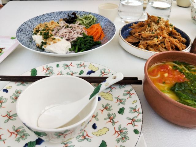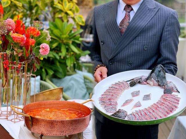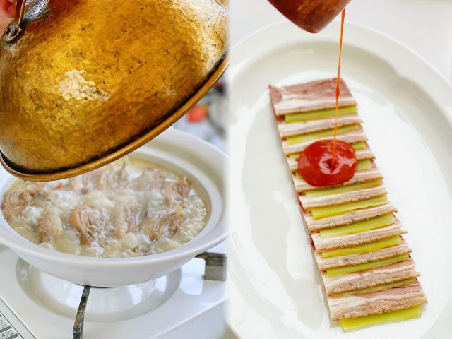 好久没去蓝港啦~这次直奔【沿途四季】,去吃云南菜,坐在湖边用餐,感受“不是洱海,胜似洱海”的惬意~沿途四季,这一刻留在秋天,在北京最美的落满金黄的季节里,美食美景交融,身心愉悦~ 【沿途四季】秋冬菜单上新,秋收冬藏,这一季是吃黑山羊、黄牛肉、咸鸡和九年百合的季节,沙葱会泽黑山羊、白切带皮会泽黑山羊、清炖会泽黑山羊、版纳带皮黄牛肉、虾酿百花羊肚菌、三芹苗焗九年百合……新菜可品,经典菜也是必吃,云南版纳酸汤鱼、沿途鸡遇、牛肉拌薄荷、小锅米线、破酥包……和朋友们边吃边聊,下午茶接上,湖边这一餐三四个小时起步~ 🌟沙葱会泽黑山羊:厚切黑山羊肉混合沙葱酱汁,沙葱和羊肉是最佳伴侣,沙葱酱有辛香,却不辣口,新鲜的沙葱酱汁还有一丝丝鲜甜味,正好中和了羊肉的味道,厚切黑山羊肉片口感Q弹,新鲜的食材都是从云南空运而来的。 🌟清炖会泽黑山羊:天气一冷,热气腾腾的羊肉汤是心头好,大火煮开的铜盖砂锅里每块肉都松软有弹性,切面的大理石花纹看了就让人胃口大开,煮熟后肉质鲜嫩、味道鲜美,肉汤澄清鲜香,带皮煮炖汤头更是好喝。 🌟虾酿百花羊肚菌:羊肚菌酿虾并不陌生,口感鲜美醇厚,属于人见人爱的一道菜。小甜豆既起到了调色的作用,也调和了口感,份量足到爆,可见餐厅的诚意十足。 🌟沿途鸡遇:这道菜和酸汤鱼都属于镇店之宝,整只鸡和猪蹄在铸铁锅中煲制,新鲜薄荷和香茅草调味,香气复合。待熟后把裹着浓浓酱汁的整个鸡拆分,猪蹄带筋软糯。朋友强烈推荐这道经典菜,果然是必吃的一道。 破酥包和小锅米线也是桌桌必点,除了这几道,红油蒜蓉白灵菇、丽江梨撞虾、三芹苗焗九年百合也要试一试。