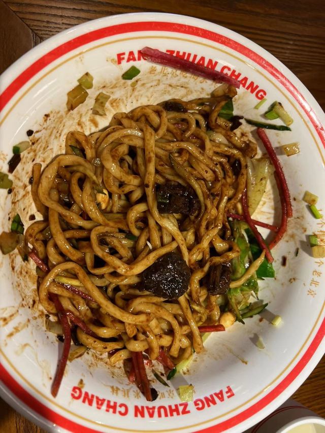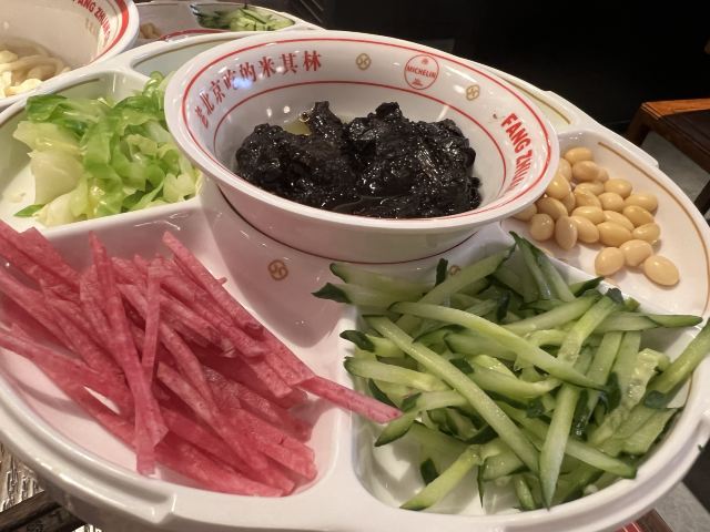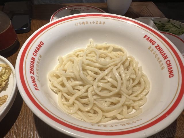 这家店是方砖厂新开的一个分店,位置在贵友大厦的背后,北侧小巷子里,操作间可以直观看到,看着挺干净。 面条是手擀面,很劲道,肯定偏硬一些,不过适合我,面码和酱都是标准配好的,一碗面正合适,不会太咸,也不会不够。味道是可以的,腊八蒜随便吃,这是灵魂啊。而且这里的面条和酱是可以一直续的,非常棒。面汤可以自己打。酸梅汤是店家自制的,很正。乾隆白菜甜味的,豌豆黄加了红豆,不甜,挺好。 服务也非常好,主动提示打面汤,也问询是否还需要续面,一顿饭吃的挺舒心