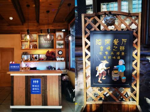 YAN HE CAN TING古北水镇吃🍜午饭 | 邻家客栈沿河餐厅 💎位置| 这家餐厅是在邻家客栈里,规模很小,几张桌子而已,但位置很好,位于景区中段美食街的位置,但是门脸很小,稍不注意会走过,不过景区大部分客栈都是这样,门脸小不明显。 🌿环境| 有几张沿河的水系观景位,环境很赞,只可惜了这个季节坐外面有点冷! 💁服务| 热情周到,水镇给我最大的感受就是走到哪里都能感受到不错的服务! 🍜菜品| 种类不多,价格实惠!这家味道明显好吃过上一家!推荐干炸小河虾,干煸豆角!5个人才两百多块!💎位置| 这家餐厅是在邻家客栈里,规模很小,几张桌子而已,但位置很好,位于景区中段美食街的位置,但是门脸很小,稍不注意会走过,不过景区大部分客栈都是这样,门脸小不明显。 🌿环境| 有几张沿河的水系观景位,环境很赞,只可惜了这个季节坐外面有点冷! 💁服务| 热情周到,水镇给我最大的感受就是走到哪里都能感受到不错的服务! 🍜菜品| 种类不多,价格实惠!这家味道明显好吃过上一家!推荐干炸小河虾,干煸豆角!5个人才两百多块!