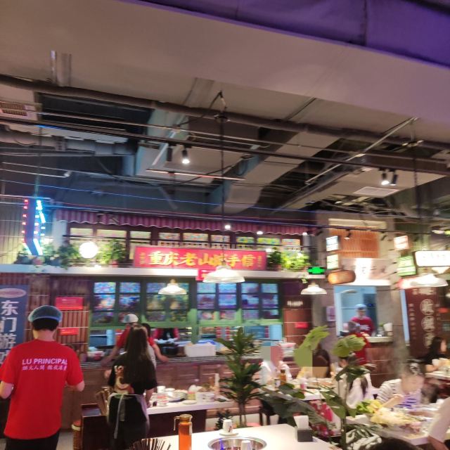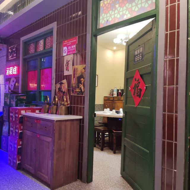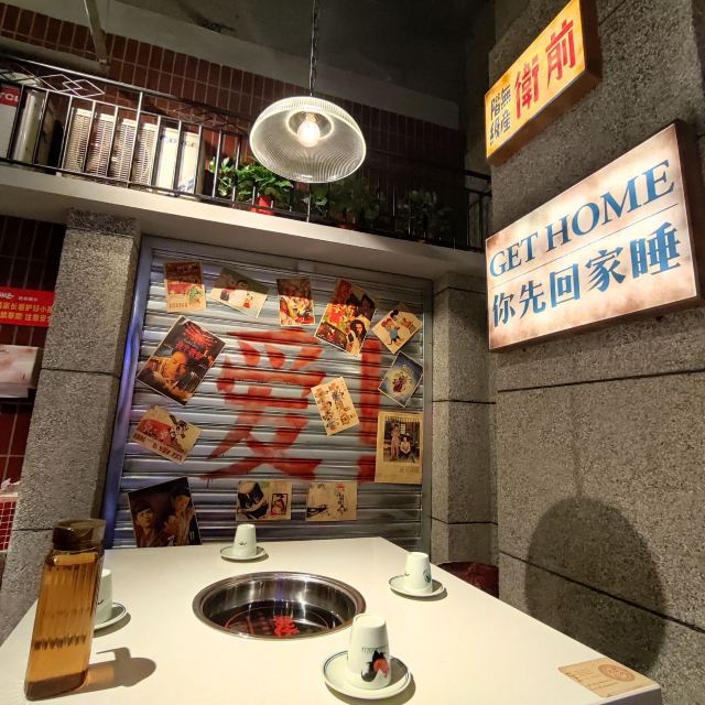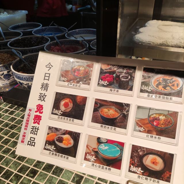 在卤校长体验超正宗重庆火锅—— 今天是有人请客,请客的人非要带我来吃西单老佛爷里这家卤校长重庆火锅,我上网一查看人家说等位要一小时,就有点儿想打退堂鼓,不过请客的人拉着我说一定要来吃这家店,因为简直太好吃了,就算等位要一小时也是非常值得的,于是只好跟着来了。 不过中午十二点多到店之后发现门口确实摆了几十把等位用的椅子,但却并没有人在等位,店里倒是满满当当,店员说现在就有位,还真是意外。店里布置得非常有特色,整个设计成了八十年代胡同小巷那种感觉,是整体的一个布景,边上的包间就是一排平房的样子,对几十年前的城市风貌还原度颇高,年代感十足,店里空间挺大,每张桌之间距离适中,舒适度还是比较高的。跟着领位的服务人员往里走,穿过外面的大空间,走过一条窄道,发现里面还有一个比较小的空间,也摆了几张桌子,今天坐了这里。透过门缝看到旁边包间里的情景,就是个挺大的屋子,摆设布置也完全是八十年代普通民居的景象,装修风格、家具、物什等等还原度也都很高,就像是原来在家请客的感觉。 点菜是扫码点,菜品比较齐全,重庆火锅经典的内容基本上都有,另外几种辣卤也是这里的特色,看多来聚餐的,基本上就是把所有的辣卤都上一遍,应该是必须要体验的。大大小小点了二十几样吧,麻辣牛肉、奶香嫩牛肉、千层肚、羔羊卷、午餐肉、鸭血条、牛肉丸、掌中宝,还有几样素菜,小吃点了小油条和小酥肉,辣卤只点了一个卤鸡爪。然后卤校长还有个特色就是甜品不限量供应,现在是九种甜品,要去供应甜品的窗口排队,窗口有甜品菜单,每人排一次队可以点两样,后面想吃还可以再来排,这个窗口基本上就是一直有人在排队,里面做甜品的师傅一定很辛苦,全程不得休息。小料也是自取的,小料台有两处,调料的品种倒是不多,主要就是可以调麻酱料或者香油蒜泥料,旁边墙上有自制调料的几种配方,可以参考。重庆火锅就是配香油料,麻酱应该是为了适应北方人的口味,反正在重庆吃火锅是没见过有提供麻酱料的,不过这里的麻酱调得很好吃,味道比不少铜锅涮肉的店都不差,这个有点儿意外。所有菜品都不错,没有踩雷的,卤鸡爪很软糯,难怪辣卤是人家店里的招牌呢,下次一起吃饭人多的话确实应该把所有辣卤都点一遍尝尝。 这边的服务也是很好的,虽然人多满座,但是服务人员的数量充足,服务上完全可以让每桌的客人都不受冷落,而且主动性还很强,又都很热情。
