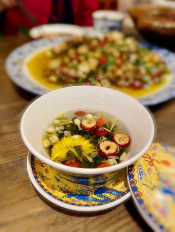 在北京也能吃到杨记隆府重庆江湖菜开心😃 和闺蜜来拔草,这家在重庆已经有八年历史的重庆江湖菜,店在机电院里,位置很好找,东三环边上就有大大的指引牌,很醒目,店门口停车位也充裕; 先来上一碗红糖阴米粥,淡淡的甜很暖胃,八宝茶也是好喝又带感,小哥沏茶的功夫了得; 热辣江湖,狂点辣菜:辣子鸡霸王兔毛血旺爆炒牛蛙…辣到麻木,但超级爽! 庆龄白风糕必点,太好吃了😋还有司令大麻团不要错过; 好吃不贵,服务也到位,基本满座,服务员响应速度很快,很舒服的用餐体验,已经和闺蜜约好下周再来尝尝别的菜😋
