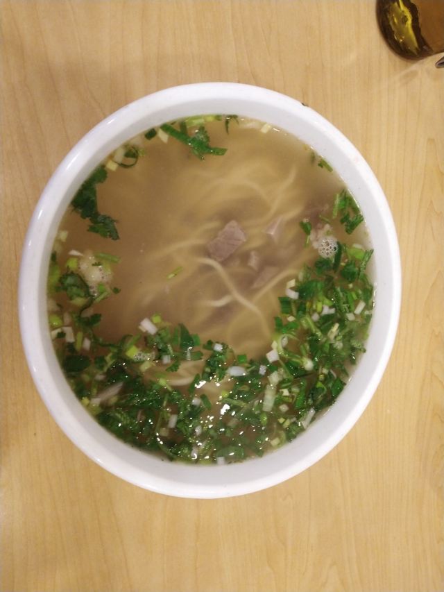 牛肉面里的牛肉块头很大,汤汁的味道很香