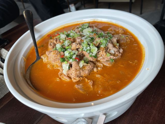 和朋友在附近谈事,到了饭点儿附近逛逛,无意中走进了「德永枣香烤鸭(官舍店)」,说实话之前在官舍只是在一层和地下一层吃饭,这次到楼上尝尝。 【环境】 饭馆儿主打北京菜,但是其他菜系的东西也不少。 装修看起来还不错,既时尚又古朴,适合请客。 【口味】 点的东西不多: 「贵州酸汤煮汤羊肉」羊肉比较嫩,配上酸汤很下饭。 「麦香富贵双味虾」虾去皮炸熟,一种外面裹满麦片,一个外面抹上酱(感觉是蛋黄酱),味道很好。 「德永经典沙拉」用点名做的东西一般都不错。