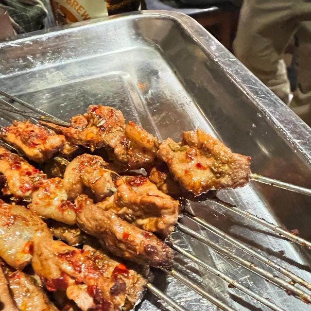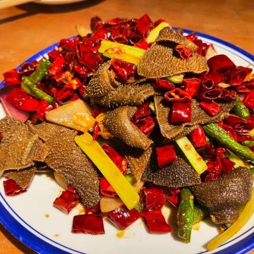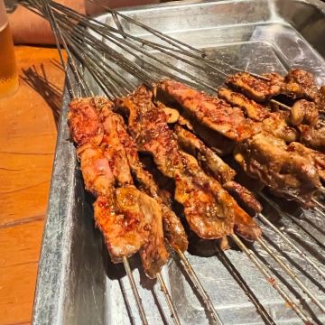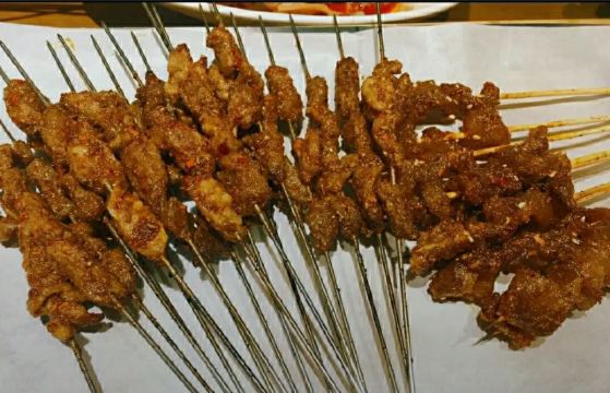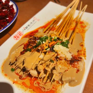 口味: 麻酱涮牛肚 麻酱和辣椒,口感很好,牛肚比较嫩。金奖酸辣白菜 白菜很脆,微微酸味,辣度为主。招牌川椒爆毛肚 毛肚很脆,很爽口。猛火烤小腰 小腰很嫩。鲜嫩烤肥瘦 一块肥一块瘦,嚼着很香。招牌烤肉筋 很好吃,小串里这个很香。 环境: 烤串店的感觉。 服务: 还可以,也像西安一样拿着串到处走。