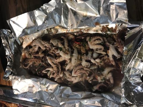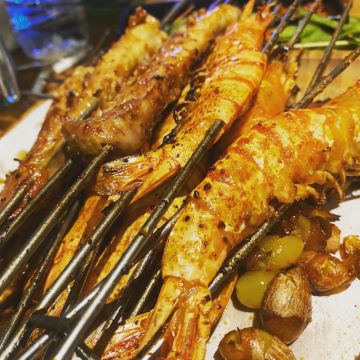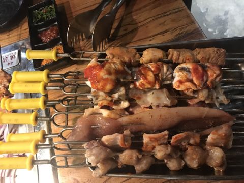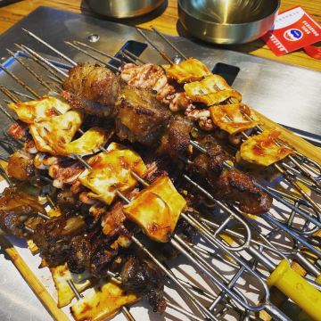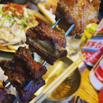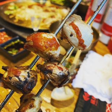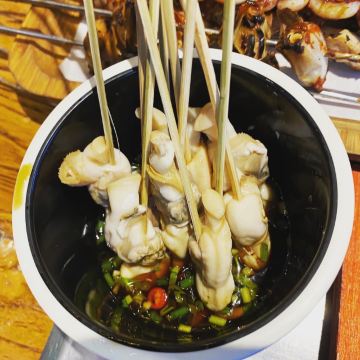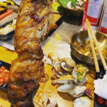 artistfx1118「烤心管」很脆,刷酱后味道很好「小仁仙」就是蛏子,煮好后,去壳,放调料,很清淡,很入味,是凉菜,适合下酒「葱油海上鲜」很好吃,比较清淡去,很多种海鲜「黄蚬子」这个是常规做法,没有汤,食材很新鲜「腌过的牛肉」很嫩,味道好吃「烤酸菜」非常推荐,不是特别酸,烤的干干的,非常好吃「拌肋条」很好吃「烤羊小排」比较入味,很香「烤大蒜」烤的很软,刷酱很入味「海鲜全家福」都去壳,烤的很入味,很新鲜「烤烤鸡翅」味道不错「蒜蓉烤茄子」料很足,很有味道,很好吃「烤明太鱼」不干,很有滋味,烤的非常好「烤银杏」很好吃「烤大对虾」虾个头很大,很新鲜「泡菜五花肉炒饭」炒的很香,很有味「水煮黄蚬子」有水,黄蚬子还是很鲜「鱿鱼须」味道不错 [薄荷]环境: 环境不错,酒的种类也多 [服务铃]服务: 还不错