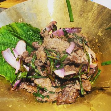Kaokao·dandong Seafood Barbecue (wangjing)「烤心管」很脆,刷酱后味道很好「小仁仙」就是蛏子,煮好后,去壳,放调料,很清淡,很入味,是凉菜,适合下酒「葱油海上鲜」很好吃,比较清淡去,很多种海鲜「黄蚬子」这个是常规做法,没有汤,食材很新鲜「腌过的牛肉」很嫩,味道好吃「烤酸菜」非常推荐,不是特别酸,烤的干干的,非常好吃「拌肋条」很好吃「烤羊小排」比较入味,很香「烤大蒜」烤的很软,刷酱很入味「海鲜全家福」都去壳,烤的很入味,很新鲜「烤烤鸡翅」味道不错「蒜蓉烤茄子」料很足,很有味道,很好吃「烤明太鱼」不干,很有滋味,烤的非常好「烤银杏」很好吃「烤大对虾」虾个头很大,很新鲜「泡菜五花肉炒饭」炒的很香,很有味「水煮黄蚬子」有水,黄蚬子还是很鲜「鱿鱼须」味道不错 [薄荷]环境: 环境不错,酒的种类也多 [服务铃]服务: 还不错
