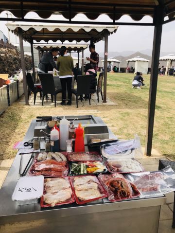 迷失的雪夜找了一个风和日丽的周末,与朋友一起驾车前往,我们是上午到的,停车很方便,因为疫情原因现在要排队登记,进去之后就是一番美丽的景色! 【烧烤】烧烤真的是不错!种类繁多,肉质新鲜,比手还大的阿根廷红虾🦐,战斧牛排🥩,雪花牛排🥩,鳗鱼🐟,肋排,培根🥓,蔬菜🥬,德国香肠🍗,芝士年糕....种类多了,我们是直接要了一个十人套餐,绝对够吃了,最大的乐趣是自己在铁板上烧烤,不同于炭火的是这样的没有油烟,大家都争抢着要试试呢!店家还会给很多调料与酱包,什么都有,不用带很方便啦! 【环境】烧烤另一片区域是一片草地,草地上有很多休闲娱乐设施,感觉很不错,网红打卡拍照胜地!感觉还是一个适合溜娃的地方!哈哈哈哈,我们去的那天阳光正好,不是很晒,还很凉快,大家在草地上拍了很多照,是一个拍照胜地!