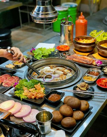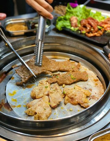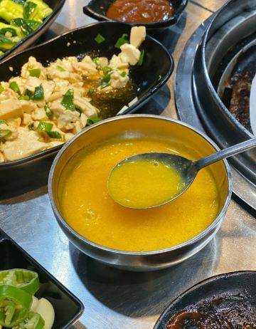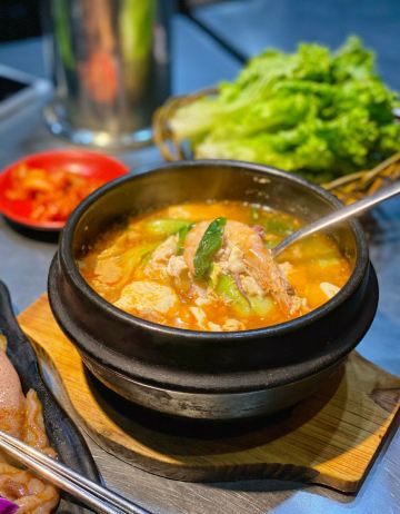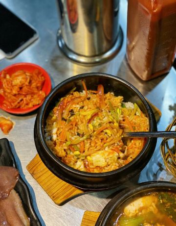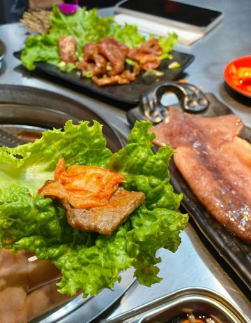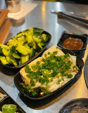 天气越来越凉 贴秋膘得跟的上~ 烤肉不仅能带来热量 还有满满的幸福感 万万没想到鸡腿肉全场最佳 鸡肉真的是我最爱 又嫩又多汁~腌制牛肉和泡菜一起用生菜包着巨好吃!我们一致认为他家泡菜是凌驾于全场最佳之上的存在牛舌一不小心就烤老了 无奈求助店员帮忙 才终于解锁弹嫩口感 鱿鱼整个烤起来好过瘾 香菇好吃完全不输肉~ 我的必选主食石锅拌饭和海鲜豆腐汤都没让我失望 最后吃high了 还加了一份拍黄瓜和小葱拌豆腐 在喜欢光环加持下……就觉得怎么那么好吃啊 莫名喜欢这种家庭式餐馆 店小装饰朴素但很温馨 他家泡菜和南瓜粥都不是那种千篇一律的味道 很有自己的味道 好吧重点还是好吃!