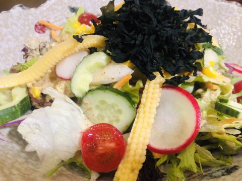 超喜欢的一家料理店~ 不怎么喜欢烤肉的我都要隔三差五来打卡~ 临时打卡居然赶上要排队,感谢小伙伴没有当场发飙~尴尬脸。 等了差不多半小时。餐厅一共有八张桌子。四张普通的,四张需要拖鞋的那种~ 味道一如既往好好吃,今天素食主义。第一次尝试沙拉,量很大,菜叶很新鲜。 烤肉就不用说啦,肯定是非常好吃哒~