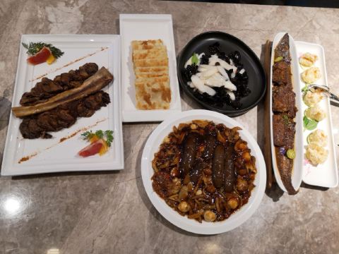 青柠怪味虾,精品红烧舟山带鱼,葱花饼,酱爆桃仁鸡丁,松鼠桂鱼,精品香酥鸭,干炸丸子,凯撒沙拉,老妈烧茄子,炒豆角丝,香草焗牛排,鲜虾脆藕狮子头,红烧豆角排骨,红烧舟山带鱼,干炸小丸子