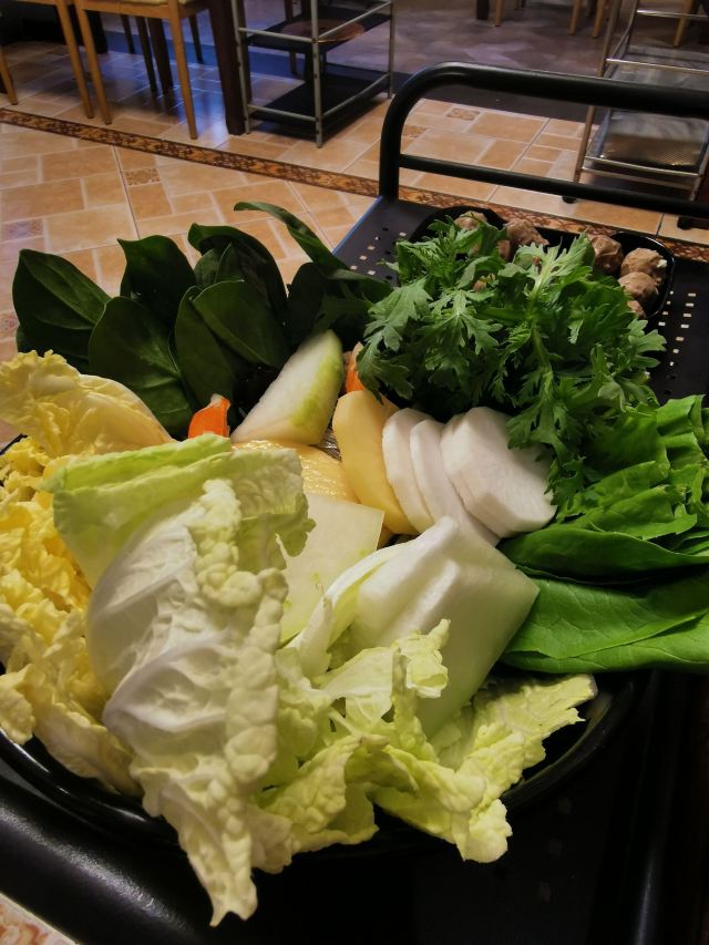 多次路过门口,终于有机会整了一个暖冬招牌4人套餐团购券享受了一把超值涮锅美食。 早点儿来,11点开门就来可以选一个较宽敞的位置,大堂大部分是4人座,也有几个6人座。包间可能要预订,且有500-800的消费门槛,饭点儿来不一定有,团购优惠也不能享受。 团购餐里主食两样有点儿多了,不过即使剩下也是值得打包带走的。 吃涮肉必须是传统炭火铜锅,套餐配的肉量偏少些,又添了手打虾滑和手切羊后腿。鼎力推荐手切羊后腿,久涮不老…… 人均90的消费绝对性价比超高,涮肉选这里不会错。