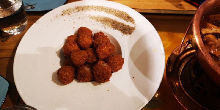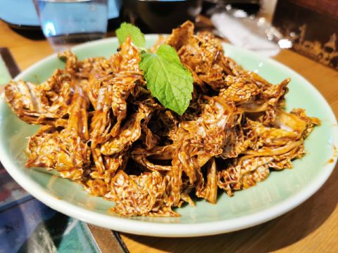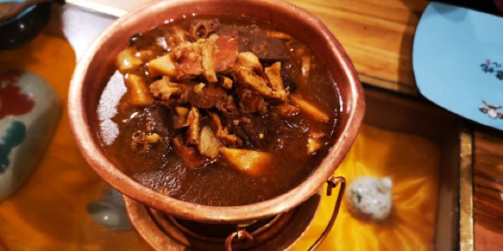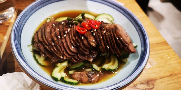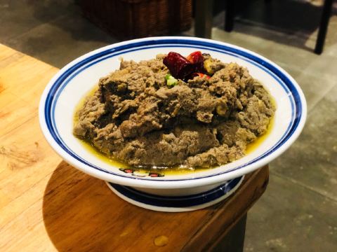 伊來前进道上的局气,是一家享誉多年的新京菜餐厅,菜品脱胎于地道的老北京菜,口味上保留了老派的精髓,摆盘和环境的创新上下足了功夫。大家都熟悉蜂窝煤,其实他家每个菜都说得过去,我最爱的还是他家的烙饼卷带鱼,那个丰厚扎实,真是解馋。 【排队】工作日晚上去,前面有14人在排队,真火; 【环境】整体环境是老北京胡同的风貌,有四合院、鸽子窝、提笼架鸟、风筝、大碗茶….老北平的俏皮与厚重全出来了; 【菜品1】 菜品名称:烙饼卷带鱼 价格:¥58 ·带鱼最注重选材和调料的配搭; ·不同于南方的干炸,他们家用的是红烧的制法,而且夹在烙饼里吃; ·用托盘盛上来,分量十足,三四个人吃刚好; ·挺宽的带鱼,经过红烧后,外观红褐滋润,口感咸香如缕; ·要夹着热烙饼一起吃,能品味到碳水与优质蛋白交汇的满足感; 【菜品2】 菜品名称:干炸丸子 价格:¥38 ·炸丸子最注重制作和炸制这两道工序; ·不同于以往的炸丸子,他们家用的是油过三遍的制法; ·用大盘子盛上来,分量十足,三个人吃刚好; ·打浆上劲儿的肉丸子,一炸熟,二炸固,三炸酥,外观金黄酥脆,口感外焦里嫩; ·要蘸椒盐吃,能品味到最正宗的口味; 【菜品3】 菜品名称:贝勒爷烤羊肉 价格:¥68 ·烤羊肉最注重肉部位的选材; ·不同于以往的烤羊肉,他们家用的是老北京炙子烤肉的做法; ·用烤盘盛上来,分量适中,三个人吃刚好; ·鲜嫩羊腿肉,经过“二葱”同烤,外观油润动人,口感咸香肥嫩; ·要一边加热一边吃,能始终品味羊肉的鲜味; 【服务】服务员态度不错,满嘴的京片子,上菜速度很快; 【适合】适合聚会、非正式宴请的时候来; 【对比】和其它北京菜相比,他家菜品花样更多,蜂窝煤和杏仁豆腐都很有趣; 【位置】在前进道的辅路上;周边还有武清博物馆可以游览; 【交通】建议乘的士前往,只需终点定位店名可达; 【优惠】用团购更划算;