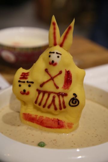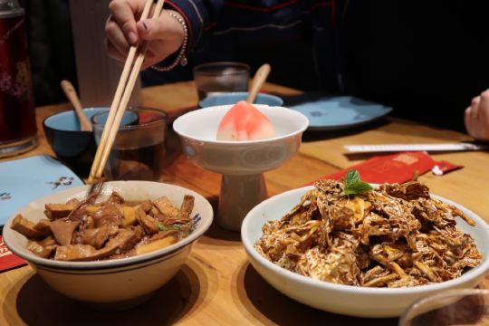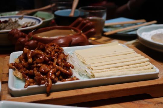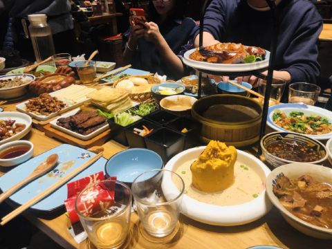 文房烤鸭,炸灌肠,乾隆白菜,兔爷土豆泥,局气豆腐,局气炒饭,局气酥皮虾,小吊梨汤,三叶香拌腐竹,局气文房烤鸭,贝勒爷烤肉,杏仁豆腐,师爷宫保鸡丁,小白菜烧豆腐