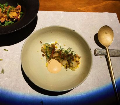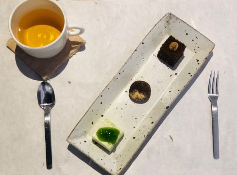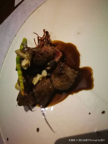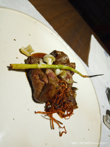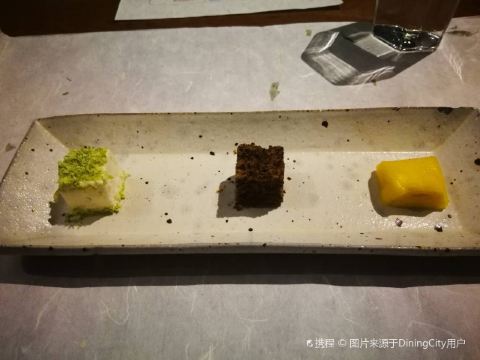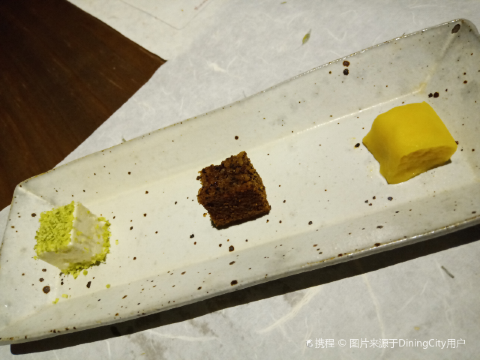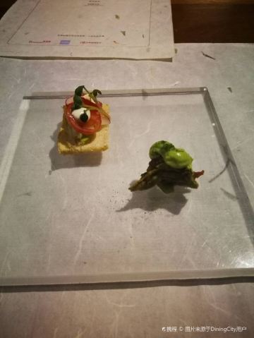 ★灬甴丣灬★[环境]环境很好很幽静,在一个小巷子里,中式风格装修。院子里有竹子,照相很推荐白天去 [服务]服务很好,会很细致的介绍每一道菜品 |餐前小食^一个是面包上搭配煎鱼配西红柿和萝卜;另一个忘了[捂脸]底下是虾片内种,上层鳄梨酱酸酸的,小食很开胃 |低温贝肉^肉质紧实,下层是桃胶,口味微酸。外部炸层被下层沾到的地方不酥了。 |炉烤羔羊排^ 羊肉很嫩,感觉大概7分熟的样子,咬下去都是汁水,很好吃。感觉芦笋考有点过 |鹅肝松露饭^我想说吹爆这款!超级喜欢吃!米饭中夹杂胚芽米增加口感,加上滑润的鹅肝口感超级好,在配以香椿和黑松露,超级好吃,推荐推荐! |餐后小甜品^如果说菜品逐渐佳境,那甜品着实让人失望,有点虎头蛇尾的感觉。吃完鹅肝饭在吃这个真心失望!一个是芒果的(凉凉的,外层皮有点酸,内心很甜) 一个是枣糕,说是有红茶,细品确实能吃出来,但味道很淡,不喜欢 一个是苔原,并没有吃出抹茶的味道,慕斯还可以,里面有百合增加口感,但不喜欢蛋糕里有颗粒物的我完全提不起兴趣 想单加网友们推荐的米酒冰激凌被告知早就没了 总之,菜品不错,甜品踩雷