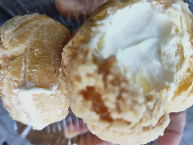 去年夏天就发现这家店了,每次路过都会嘴馋,都忍不住想买东西,但之前一直忍着没买,那天正好饿了,实在忍不住买了一份鲜奶泡芙。很好吃。