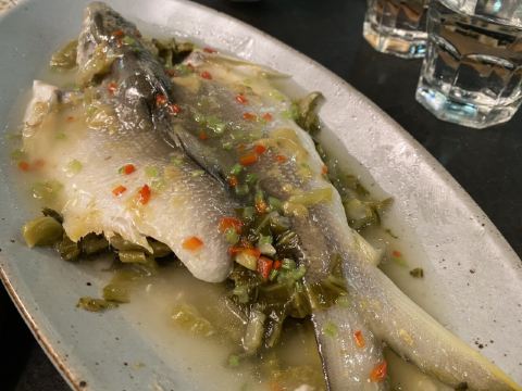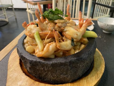 [薄荷]环境: 环境赶紧整洁 一进门让人觉得很清新 适合3 5好友坐下聊聊天 [服务铃]服务: 上菜特别快 服务也很好 完了醋 特别快就上来了 就是结账的时候 找不到人 觉得还是性价比比较低 「石锅手打牛肉丸」牛肉丸凉的有些快 还没怎么吃凉了 味道还可以「九层塔石锅大明虾」这个虾比较大只 有点不好下嘴 感觉淀粉放的有点多 影响了虾的口感「经典凤梨咕噜肉」这个菜除了有点甜都还不错「沙茶牛肉湿炒粿条」肉比较少 性价比比较低 48就是一份炒粿条不推荐