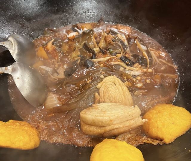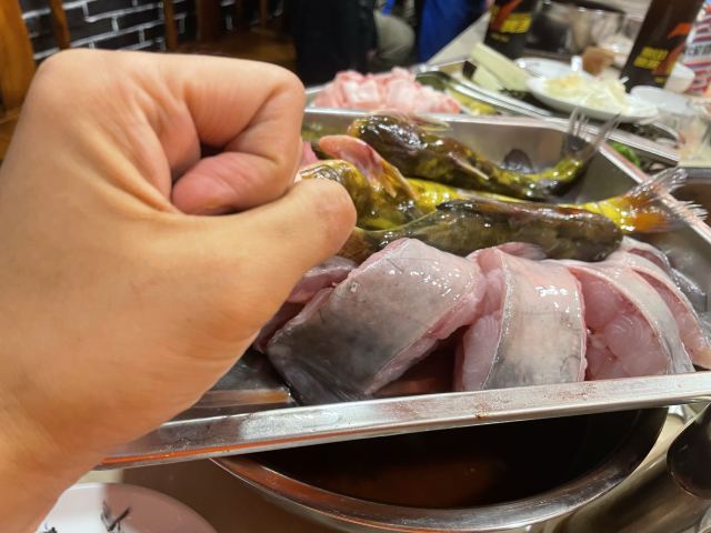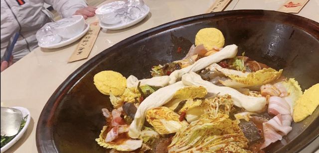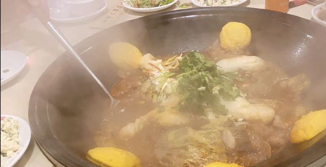 饭馆儿在民族园附近,去年天冷时候来的,在饭馆儿里热气腾腾再喝起来,一点儿都不觉得冷。 【环境】 都是卡包,装修得很东北的样子。 【服务】 正常水平。 【口味】 江团鱼 、 嘎牙子鱼 、 净排骨 、 白菜垫底 、 鲜豆腐 、 粉条 和 干豆角 都加进去了,最后再弄上 贴饼子 和 卷子 ,粗旷得好吃。