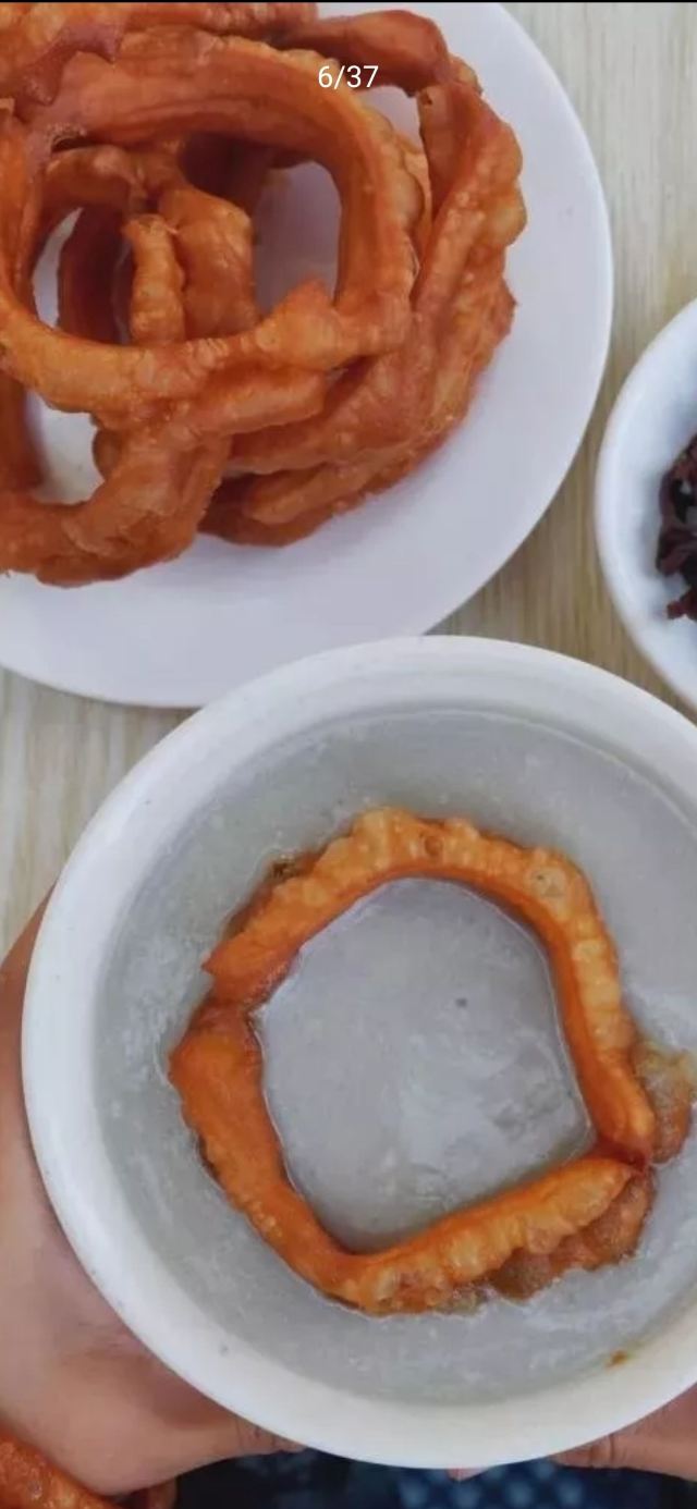 对于住在南城的北京人来说,他家不只是出名的豆汁儿店,也是大家最熟悉的早点铺子。早晨6点一开门,里面就热热闹闹坐满了人。他家的豆汁儿经过些许改良,酸臭之气普通人也能接受,并不像“泔水味”那么夸张。一碗酸臭的豆汁儿、炸得金黄的焦圈儿…老北京人的早晨就齐活了。