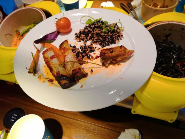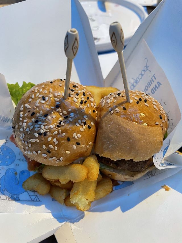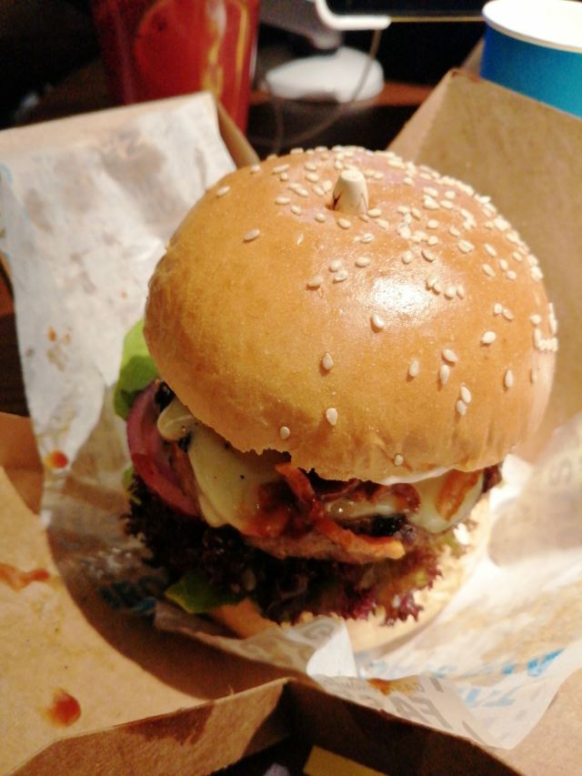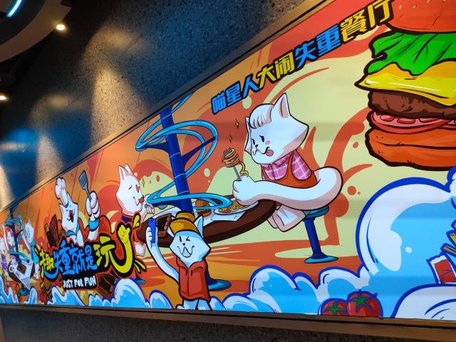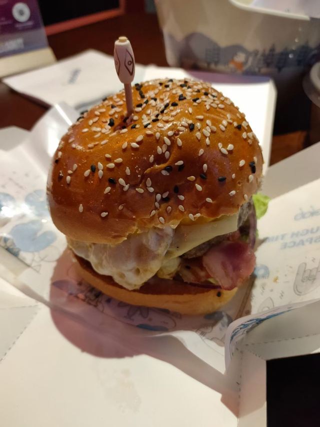 dangdang老实讲这家餐厅纯是吃一个环境。充满高科技感的送菜滑轨,的确挺能吸引人的,特别是小朋友。 不过要讲起吃来,还不如去旁边的let''s Burger。 这次比上次来,多增加了室外的座位,但是没有滑轨将菜送到面前,所以一般人都不坐,毕竟等了那么久的位,还是想感受科技感十足的滑轨送菜嘛。 讲回吃上,没有看排名盲品的,发现还是传统牛肉汉堡,失重沙拉和松露薯条好吃。然后推荐的是儿童汉堡,无他,闺女喜欢。 鹅肝松露汉堡,这种怎么做都不会太难吃的东西,在他家居然做到了,,,,难吃。雷区,千万别点。 还有一点就是,它家饮料都很难喝,也有可能是不合我口味,反正我是不喜欢,闺女也不喜欢。外卖区饮料是类似于乐扣乐扣的包装,杯子很有意思,点餐的饮料就是普通的塑封装了。