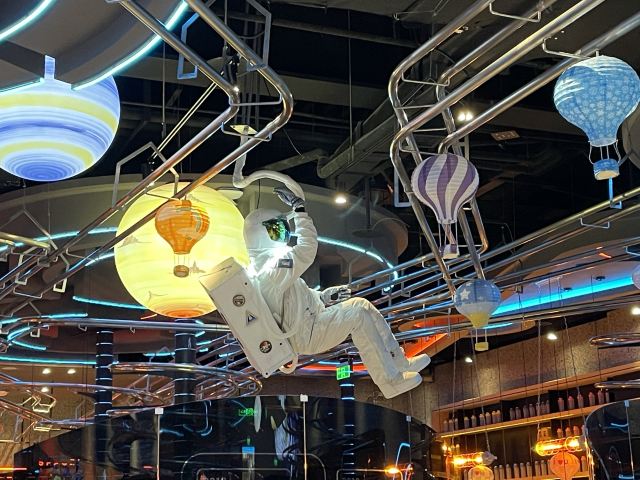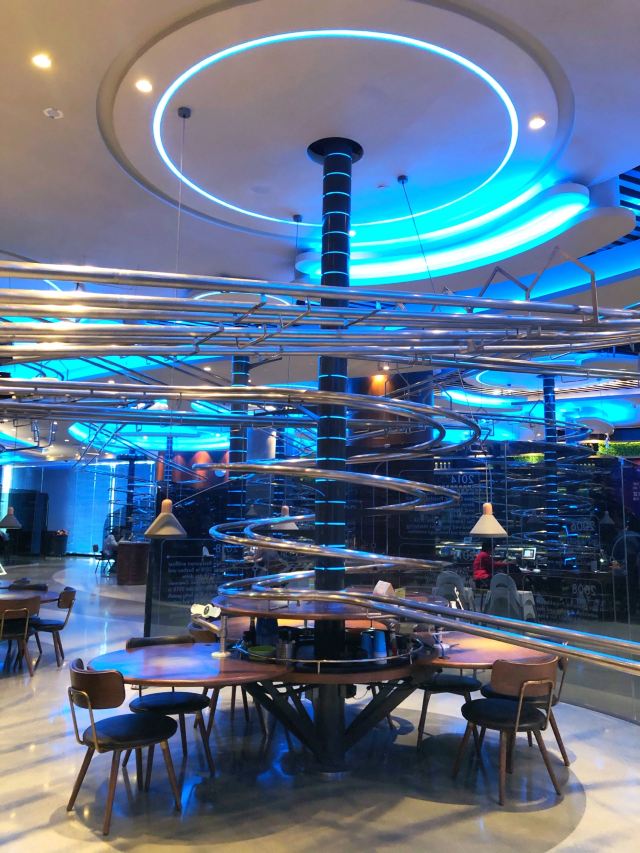 SPACELAB ( Lan Se Gang Wan )在餐厅吃饭,菜品“从天”而降,无偏差地滑落到餐桌上。这不是科幻电影的场景,这是失重餐厅的上菜方式。近年来,随着新零售方式的普及,越来越多商家引入了这类新鲜有趣的噱头,或是上菜方式,或是就餐环境,市民除了吃饭就餐,也不乏科技体验感。
