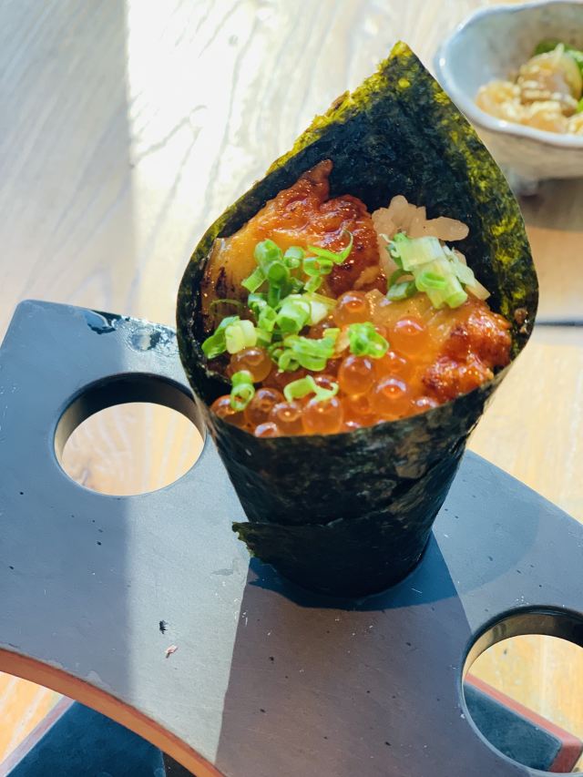 日料吃的就是一个鲜字,当日toro自然不能错过,吉拉多一般都吃柠檬汁兑味,有心做的四款创意,很满意。 毛豆居然还用黑松露增味,简直低调奢华有内涵。 和老同学聊到尽兴,尽职的店员和chef轮番提示我们手握要趁热吃,果然满口都是迸发的鱼子惊喜。 东坡肉虽然入味,吃多了也是有些肥腻了。 下次要试试鳗鱼系列和寿喜锅系列。