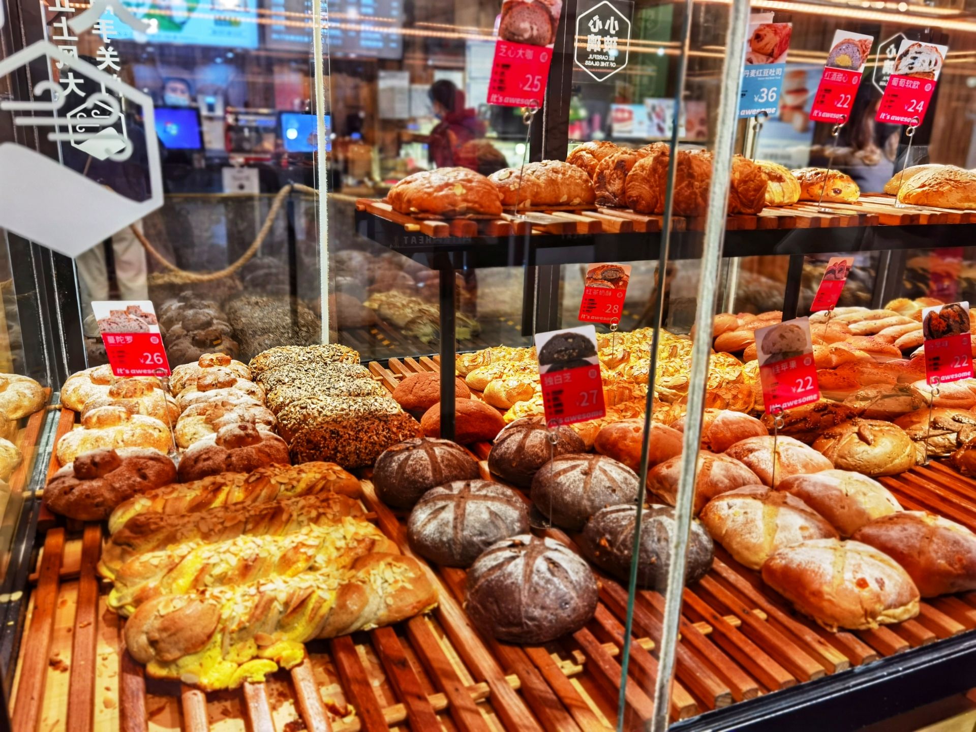 高纤奶酪,红茶奶酥,全麦乳酪蔓越莓,月半蕉,黑眼豆豆,绿代子,红酒甜心,茶物语,全麦吐司,黑米啵啵,蜂蜜柚子,芝心大咖,肉桂苹果,火腿奶酪,甜杏软欧