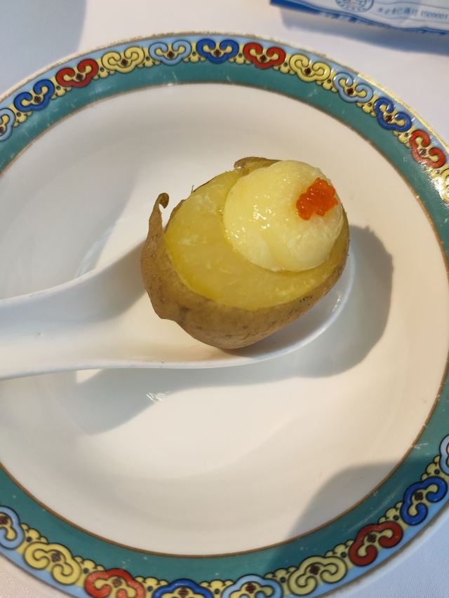 白汁河豚,松露核香鲜蚕豆,鲍鱼红烧肉,红烧河豚,椒麻乳鸽,淮扬古法煮干丝,扬州炒饭,河豚汤腌笃鲜,子苏红烧肉,金盏香椿口蘑,蟹籽焗土豆,香煎牛肉粒,海胆炖豆腐,淮杨全家福,现蒸野生蜂蜜九龄百合,河豚水饺,杏仁豆腐,红烧河鱼,三文鱼牛油果沙拉,黄金脆炸河鱼骨,河鱼素菜沙拉,三文鱼刺身,河鱼佛跳墙,白汁河鱼