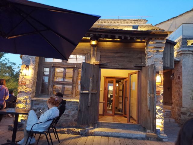 【云端咖啡】 {坐标}古北水镇山顶教堂旁。 {环境}有室内、有阳光房、有露台。营业面积不大,居高临下,视野开阔,环境一级棒。 {饮品}口感浓郁,质量过硬,与优美的环境相匹配,当然,既然享受到了“美”,饮品价格小贵,也是可以接受的。 {路途}店家所处的山并不高,登山时间约10分钟,不累。 【评价】坐在山顶露台上喝咖啡,充分享受着大自然之美,欣赏山下美景,慢节奏生活真惬意。