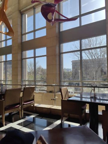 BeiJing Restaurant YangGuang Cafe【口味】很不错,朋友比较爱吃甜点 【环境】宽敞大气,阳光透过玻璃显得十分惬意 【服务】很周到,非常有眼力见 今天带着朋友来体验北京饭店咖啡厅的咖啡,点的美式和冰淇淋咖啡还有几块点心,咖啡不错,很好喝,点心也好吃,服务员雨鑫非常周到,点赞👍