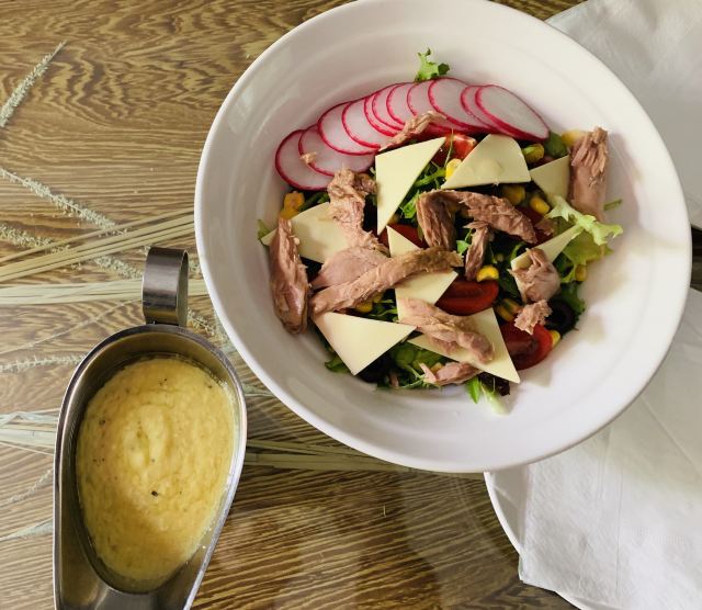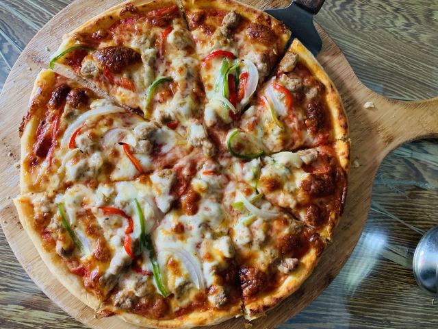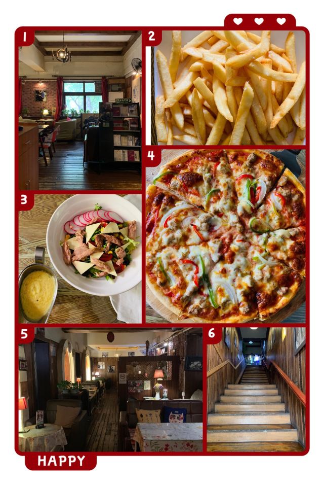 上次过去是两年前了,这次又和朋友约了过去吃饭,门口停车不是很方便,这次过去停在了南边的久凌大厦里面。两个人点了一个爱上层楼披萨,一份鸡肉沙拉,一份薯条,披萨味道不错,属于那种薄饼,料足。薯条是粗薯,炸的很脆,非常好吃,沙拉的汁是自己调的,浇上去也特别的提味,环境来说里面比较昏暗,地板也有些老旧,毕竟年头也不短了,总体感觉还可以,去就餐的学生还是比较多的。