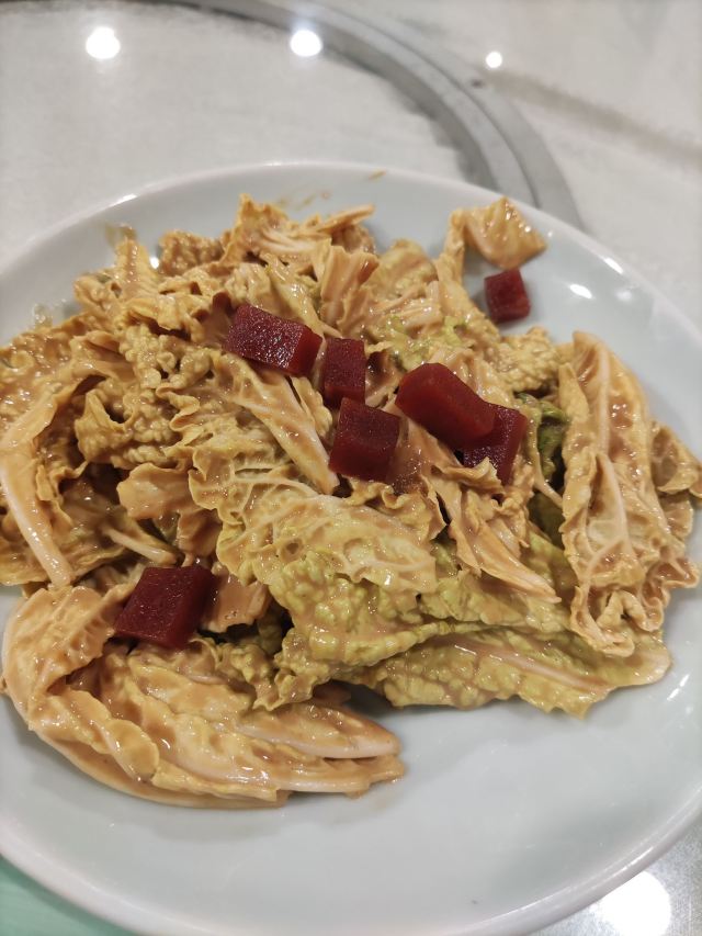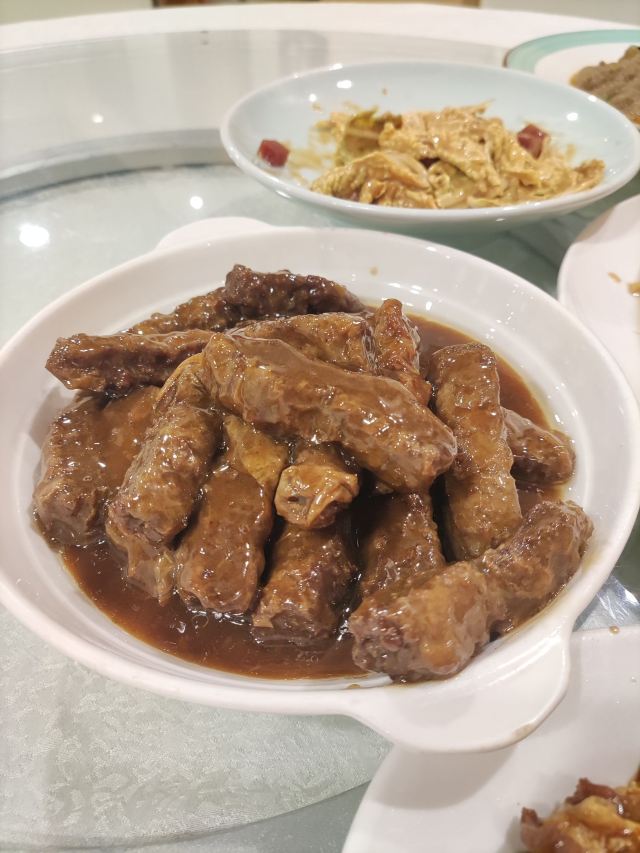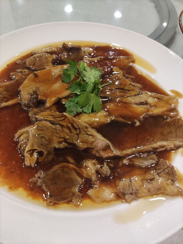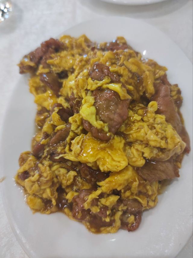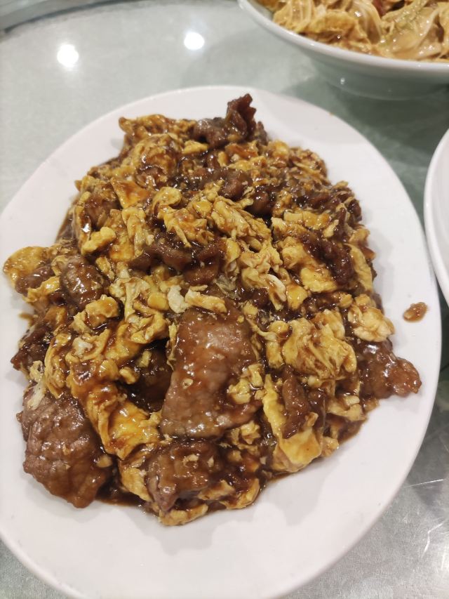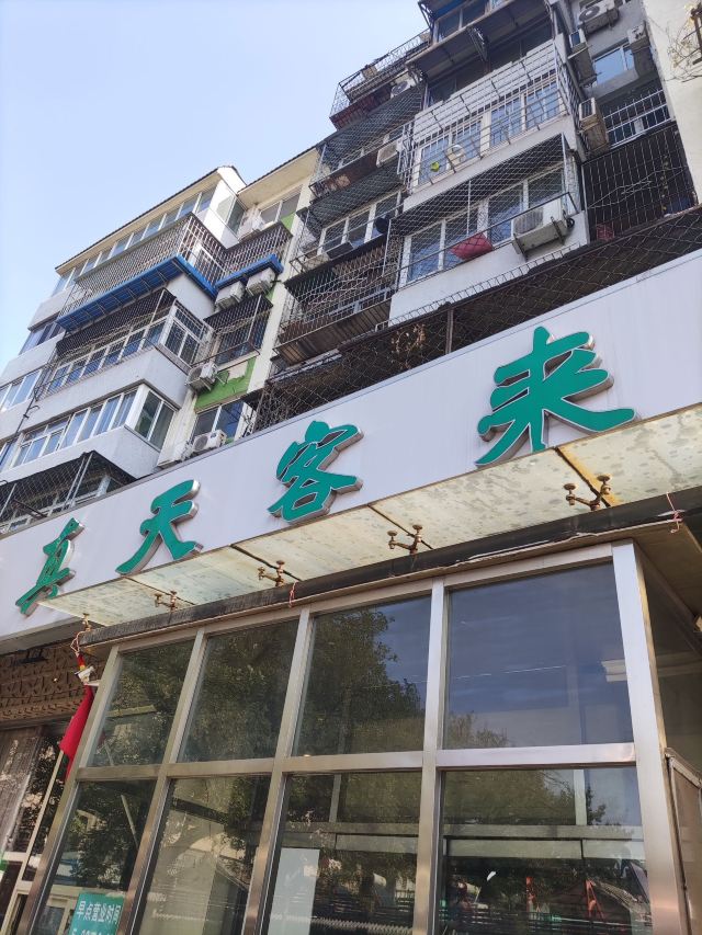 天客来餐厅,始于1985年,反正我是从十来岁就吃这家,那会儿牛街远没有现在这么多的饭馆,更没有什么“网红店”,那会儿想吃清真饭馆了基本上会首选天客来。餐厅在教子胡同,是牛街东边的一条小街,这教子胡同其实也没什么想象中的传说故事,就是原来胡同里有个轿子铺,应该是“轿子胡同”,以前牛街主街大规模建设开发之前,教子胡同里其实更好逛,有好多清真饭馆和一些卖清真小吃的门脸儿,后来胡同拓宽那些都成“违建”了,全拆了,现在只有胡同东侧保留下来几家比较大的饭馆,其中就有天客来。 今天过来是专门带朋友吃清真菜,一个十几年的老同事,一直说没专门来牛街吃过清真菜,今天特意带他过来尝尝,理所当然选了天客来。来之前想着工作日中午能有多少人,结果来了发现居然满座儿,要拿号等位,等了十来分钟才进来,坐了楼下。楼下的面积感觉要比楼上大些,有一些包间,环境嘛就是很平常,还是二三十年前的感觉,没什么特别的设计元素,座位之间的距离倒是比较大,客人之间互不干扰。今天点了几个经典清真菜,扒肉条、烩松肉、醋溜木须、羊油麻豆腐,外加两个凉菜,味道不错,还是以前的老味道,水平没下降,朋友吃着也觉得好。扒肉条可以选牛肉或羊肉,个人喜欢扒牛肉条,大薄片的牛肉,宽汁儿,颜色亮晶晶,口感有嚼劲儿却又不塞牙,价格好像是78,除了贵点儿其它都好。烩松肉也不错,这松肉炸得好,各种配料比例很合适,不硬也不糟,口感和咸淡都正合适,就是这烩松肉要是能点缀一些香菜沫、芹菜丁一类的配菜估计会更好些。这里的醋溜木须是我在北京的饭馆里吃过的口味最好的醋溜木须,可以说是色香味俱全,端上来看着就漂亮,明油亮芡,味道里层次感十足,醋酸味打头儿,咸鲜味儿收尾,吃着过瘾。麻豆腐能做好的饭馆不多,不是太稠就是太稀,不是太咸就是太淡,确实不好把握,这儿的麻豆腐就控制得正好,口感口味都属一流,热的麻豆腐配上辣椒油,既下饭又下酒。其它的凉菜、主食也都不错,味道一如既往地满意。 两个人花了三百出头,价格不便宜,这我还没敢点红烧牛尾呢。说实话现在吃清真菜都比较贵了,经典菜都大几十、一百多,头些年还没这么贵呢,今天一看它似蜜都五十多了,记得前些年才二三十,现在物价涨得太快,唉……