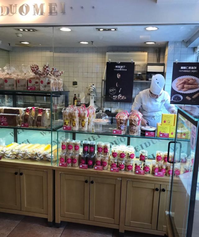 味多美的这家分店就在三环新城附近,这家店的店面比较大,中间有明亮的玻璃展柜,里面有很多甜点,面包,三明治,老婆饼,还有很多饼干,他们家的蛋糕也非常不错。
