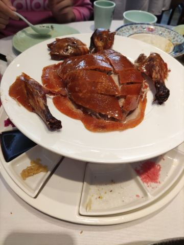 在宏福鑫见证餐饮业的复苏—— 今天周日,提前来这儿给老丈杆子祝贺生日。这一排楼都是同一家,三个门脸儿,一个快餐、一个炒菜、一个火锅烧烤,一般来炒菜这家多一些。这三处都是很火的,到了饭点儿楼前一排几十个停车位根本不够用,马路边都要停满车,甚至会停两排,所以来晚了是比较麻烦的。其实宛平城北门外的停车场很大,距离这里几百米,实在不行可以停那儿去。以前来这儿吃饭都会提前打电话订位,不过疫情这些年餐饮业受影响很大,所以即便这里生意还是挺火,但只要来早点儿通常都会有楼上的包间或者楼下的卡座;但今天没预订来了发现包间和卡座都已经订满了,只能坐大厅,大厅也是圆桌,倒也可以,就是间距窄了些,空间稍显局促。仔细想想也是,目前疫情影响几乎可以忽略,餐饮业顿时开始复苏,食客的报复性消费另餐饮企业有些措手不及。 今天点了五个菜,鲽鱼拌饭和鱼籽酱烤鸭是每回必点的,鲽鱼盘下面点着火,滋味鲜嫩,汤汁浓郁,把饭倒进汤里煮一会儿,汤汁充分浸入米饭,非常美味;烤鸭是吊炉烤的,外皮酥脆,鸭肉软嫩,搭配很多种蘸料,用鸭饼或者脆壳烧饼卷了,非常好吃,倒是鱼籽酱噱头的成分更多一些,其实只吃烤鸭就不错。铁板菌菇牛柳里面有大条的牛柳,配菜丰富,味道可以,只是这锅下面都没点火加热,可能是服务员忙不过来了吧。芝麻羊肉炸得过了,焦糊味盖过了羊肉的味道,不算满意。麻豆腐过干了,油少,吃起来糊嘴,味道倒是还行。 服务上算是热情,但一方面顾客太多、一方面服务员人数不足,所以表现出来就是忙不过来,性子急的顾客在吵,还有些细节做不到位,比之前的体验差了一些。餐饮业盼了几年复苏,但真复苏了却也是要付出很多努力的,谁准备得更充分,谁就更能抓住机会吧!