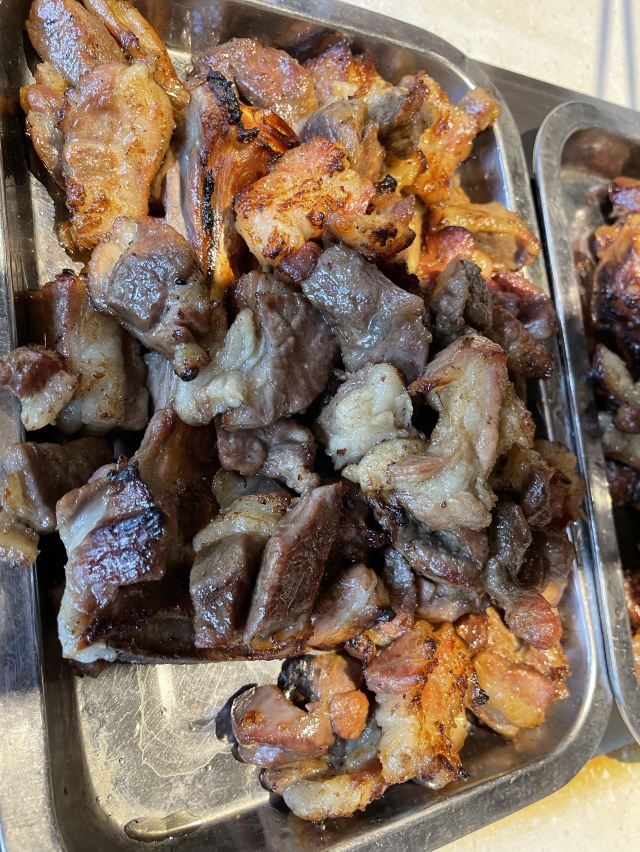 原来的ak47搬家了搬到这个地方以后还是第一次过来,工作日的中午过去的,人不算很多,餐厅的环境挺好的,凉拌菜拌的味道也挺好的。海鲜类的做的也不错。我们几个人要了一个小的羊腿,上来是放在托盘上面的,趁热吃香嫩可口,适合食肉族去吃,非常的过瘾。