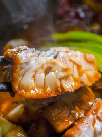镇店招牌之一的【葱烧千岛湖鱼头】是每桌必点,也是熟客来了都会回购的菜品。第一次来一定要尝尝这锅鱼头,有大份和小份可以选择,小份的就够一家人分食了。