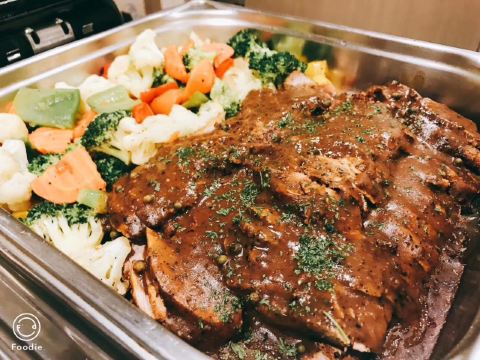 老公在外地出差尝试了这家 正好赶上公公生日 我们来吃 很早就到了 门口可以停车 20块钱 进去的时候工作人员说不用拿号 结果后期的时候进门相当混乱 就分不清先后 整个餐厅地方算比较大的 海鲜生冷居多 饮品也多 热饮较少 烘烤区需要排队等 两点多的时候服务员提醒准备收餐 整体来讲感觉一般 没有想象中的好