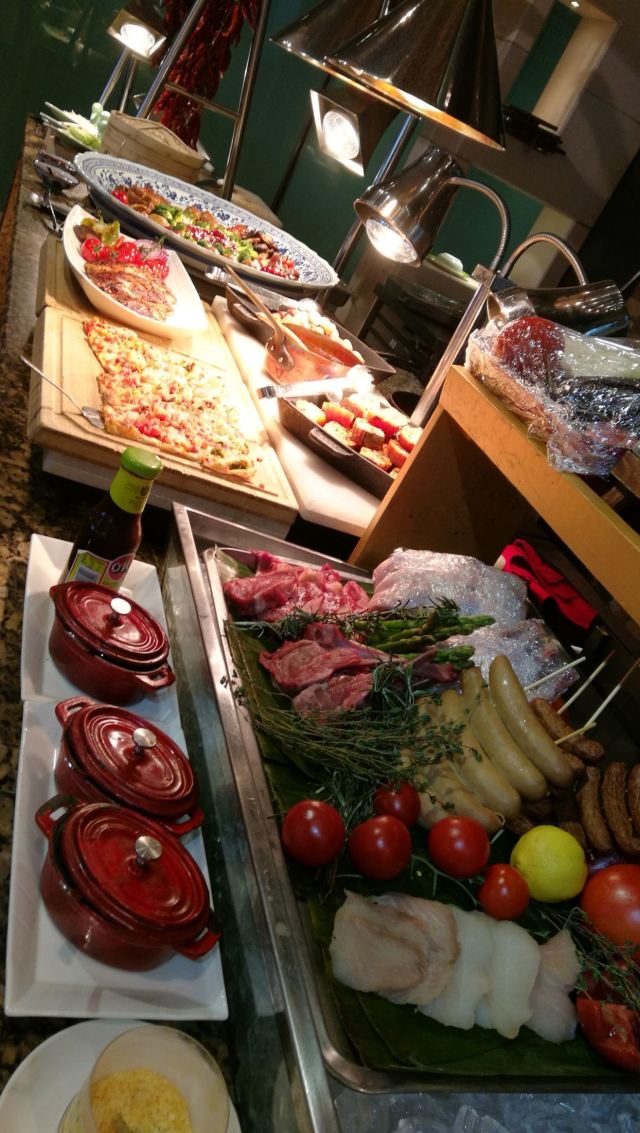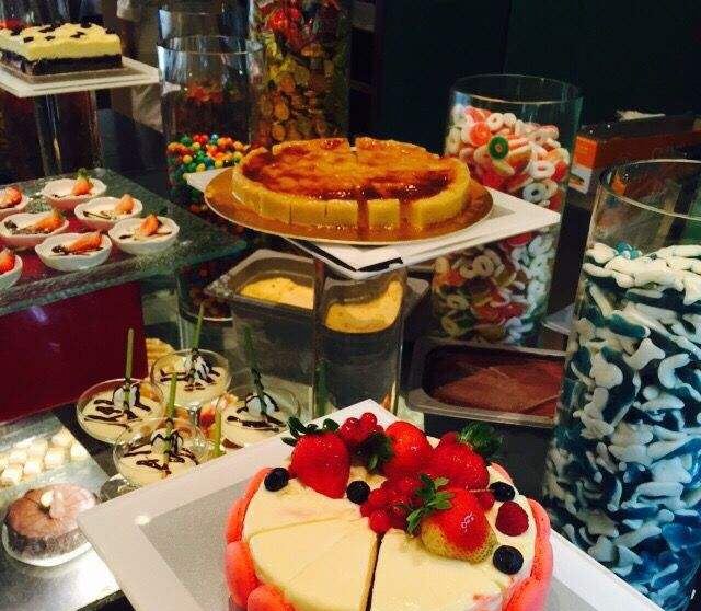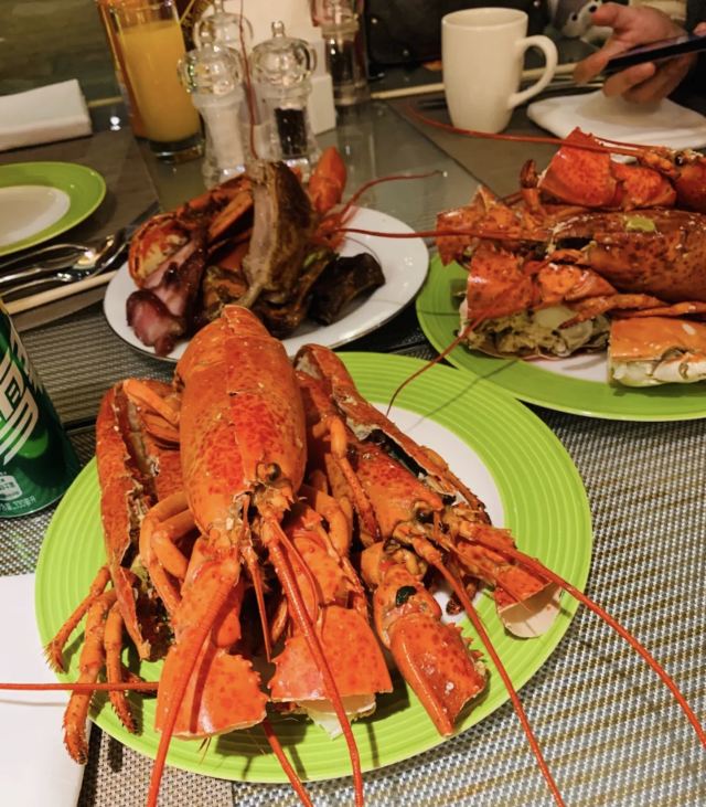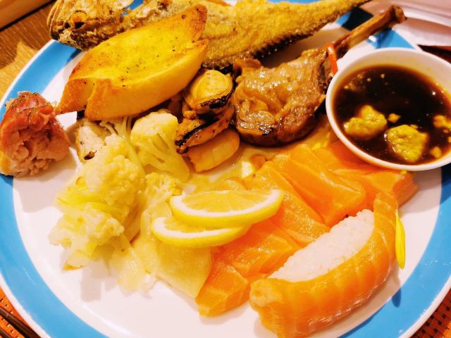 巧克力喷泉,龙虾,黑蒜烤生蚝,烤牛排,印度羊排,冰淇淋,餐后甜点,螃蟹,鱼生,三文鱼,烤三文鱼,烤鸭,日式刺身,寿司,咖啡,烤羊排