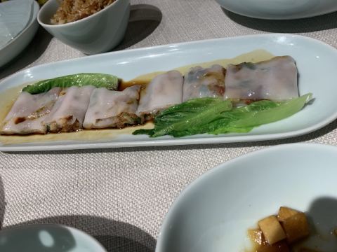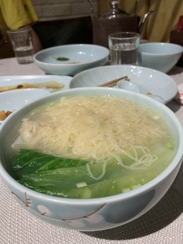 天羽手杖十一在家看阅兵仪式,看到1点多了,已经过了饭点儿了,赶紧找补一下。 位置在铭泽广场二层,麦当劳的楼上,照片醒目的。 【环境】现代风格,干净整洁,假期客人比较多,几乎坐满了。 【服务】热情有效率,上菜速度也快,不错。 【口味】 「虾饺皇」卖相不错,晶莹剔透的样子;原料新鲜,口感好,一个大非常Q弹,很赞! 「叉烧肠粉」做工也是如出一辙,叉烧的味道也不错。 「三宝腊味煲仔饭」招牌美食,很有名!上桌后把配料、料汁一搅拌,看着就让人食欲大开。腊味香气扑鼻,锅巴焦脆,太棒了 「捞汁秋葵」煲仔饭比较油大,搭配秋葵就相得益彰了。 「云吞面」虾仁云吞加汤面一大碗,热气腾腾地一下子满足了…[得意] 一次愉快经历的下午餐,特色鲜明。[得意]