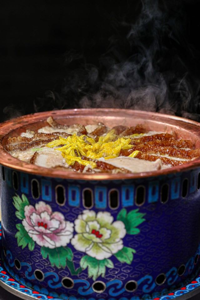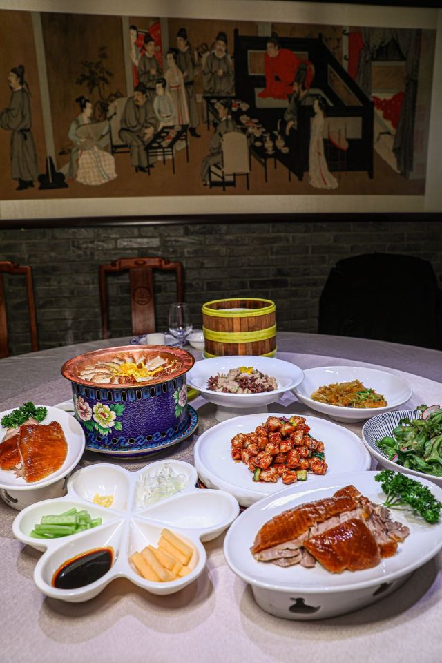 酱爆肉丁,菊花酸菜炉肉热锅,北京烤鸭,芫爆蛰头,炙子烤肉,玫瑰饼,醋溜海参,芝麻酱糖饼,杏仁豆腐,油爆双脆,葱烧海参,炸酱面,羊蝎子,干炸丸子