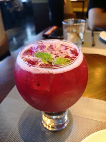 蟹肉藜麦沙拉:营养健康,除了藜麦和蟹肉,还有萝卜、生菜、火龙果、橄榄等食材,酱汁酸甜口,就是蟹肉被酱汁浸过有点影响口感。 番茄海鲜面:宽面,用叉子吃不如吃细面方便,有虾、海虹、鱿鱼,味道不错。 芒果慕斯:这个无功无过,没有惊艳之处。 樱桃莫吉托:点酒时服务员会问要不要带酒精的,冰凉爽口,酸酸甜甜,绝妙的夏季饮品。 天桥艺术中心附近餐饮少,因此餐厅人多,环境嘈杂了些,服务态度还是不错的。