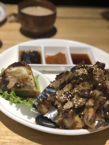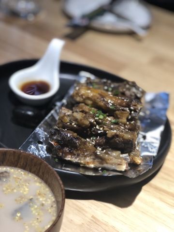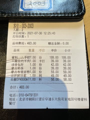 momo1979【交通】坐公共交通不是很方便,地铁14号线望京南出来还要走20分钟,或者找共享单车骑过去7分钟,门口没有车位,路边停车但没有车位线,貌似有被罚的风险。 【环境】干净,装修有特色,有演出台,估计晚上有演出,我们中午去的没有。 【服务】服务员都很热情,看到我拍照还帮忙。 【菜品】 手把肉,小份199元,有很多调味碟,根据自己喜好搭配,肉质不算很嫩,主要问题是切工,有一部分顺肉丝方向切的,不方便咬。 只撒盐的羊肉,39元6串,肉块实在是太小,比我在家熬出来的油渣还小,完全找不到吃肉串的感觉,性价比太低。 油香包肝,42元六块,就是烤羊肝,只不过把羊肝切片与肥肉卷着烤的感觉,有太大,腻,没有吃烤羊肝的感觉。 烤包子,59元六个,味道不错,馅味道淡淡的,能吃出羊肉的鲜香味。 拌沙葱,49元,咸淡合适,只是觉得一盘沙葱里有几根不很新鲜,影响了整盘沙葱的味道。 蒙古奶茶,39元一小壶,两个人喝刚刚好,只是味道有些淡,不如曾经在海拉尔喝的香。