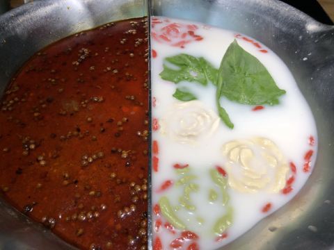 专程来打卡,为了鸭血和巧克力冰激凌。然而冰激凌不见了,鸭血也切得特别厚,不再是煎得抖抖的特别入味的那种。 不过也有新发现,比如这个漂亮的养颜锅,里面几多漂亮的花,吃起来糯软,很不错。 毛肚也是不错的,被儿子评为当餐最好吃的东西。