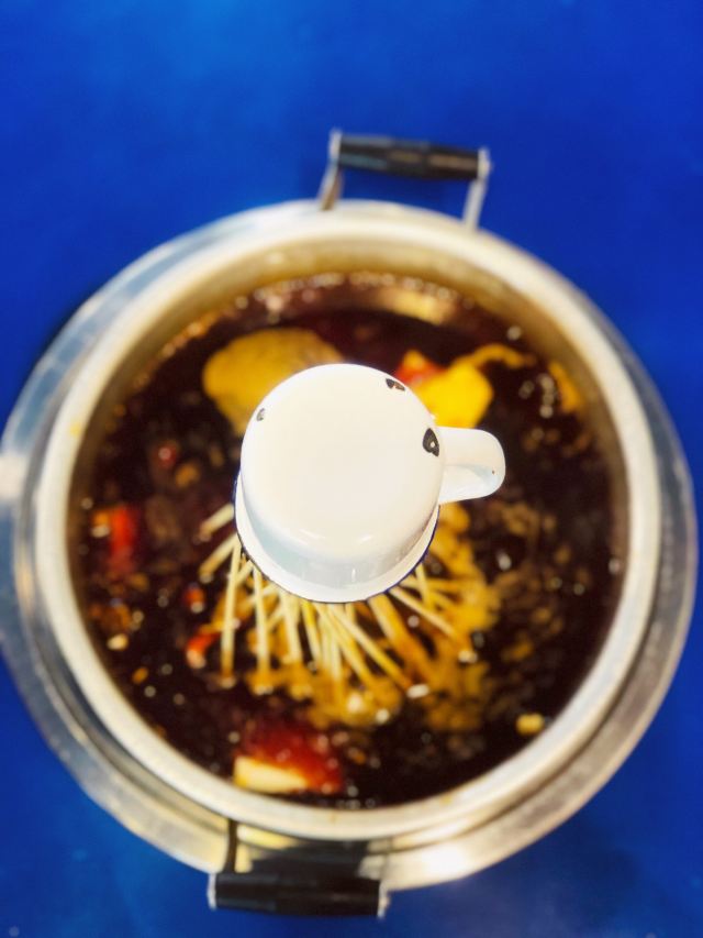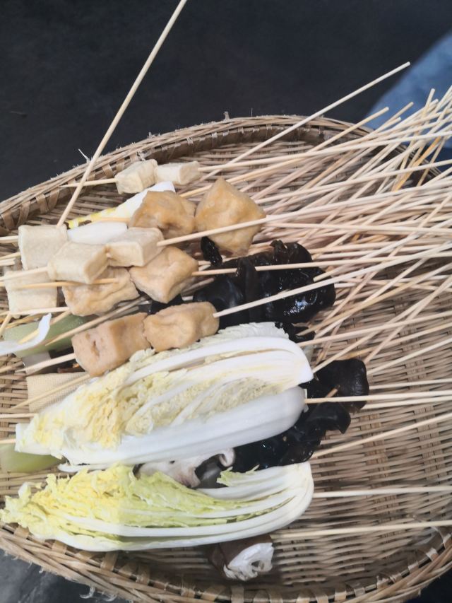 Flly现在马路边串串香真的很火,慕名而来,7:30到的还需要排队,但是没等多久就到了,店面不大,里面很热闹,锅底42元,小料8元每位。