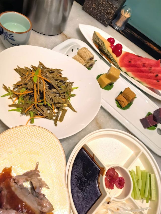 环境很好,服务很热情,周到,烤鸭现烤,好吃,小吃也不错,孩子喜欢吃,值得推荐